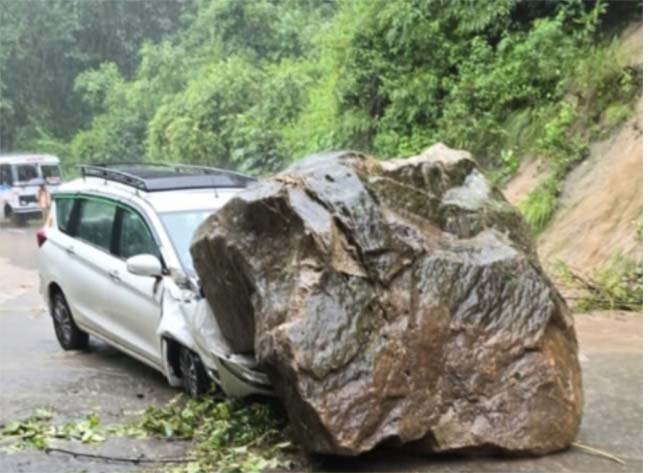उत्तराखंड में बारिश बनी खतरा! नैनीताल-हल्द्वानी हाईवे पर टैक्सी पर गिरा विशाल बोल्डर, बड़ा हादसा टला